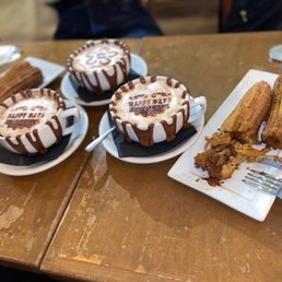 Tried the nutella churros and they were pretty good! Also had the Spanish latte and horchata latte. The horchata latte wasnt good so wouldn't recommend. Also service wasnt the best, not very welcoming