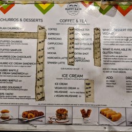 Happy Days Cafe, located in Los Angeles, CA, is a trendy spot that offers a variety of gluten-free options in the categories of coffee, tea, and desserts. With a range of utilities such as delivery, takeout, reservations, and even catering services, this cafe caters to a diverse clientele. The menu boasts unique offerings like stuffed churros, churro waffles, and churro ice cream sandwiches, along with vegan options like coconut vanilla ice cream.
